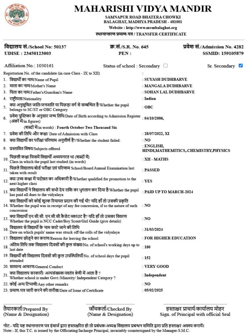 MVM Balaghat maharishi mahesh yogi Maharishi Vidya Mandir Logo